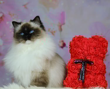 Vi elsker hendes dejlige type og det dejligste temperament, som vi håber hun vil give videre til sine killinger. Hun er en helt igennem skøn pige, som vi er utrolig glade og stolte af, at vi kan få lov til at få ind i vores opdræt.